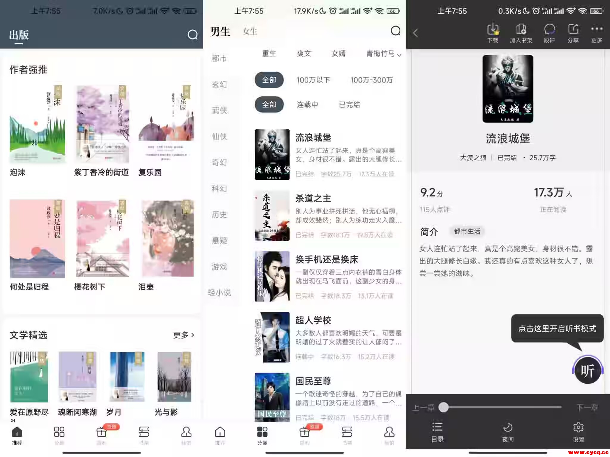 【软件介绍】:正版小说,无线畅读!现代都市,玄幻仙侠,悬疑推理,言情穿越,你想看的我都有!从此告别书荒!免费、好看、海量免费小说,让你看书不花钱,越读越有趣,已解锁永久会员!去除更新!