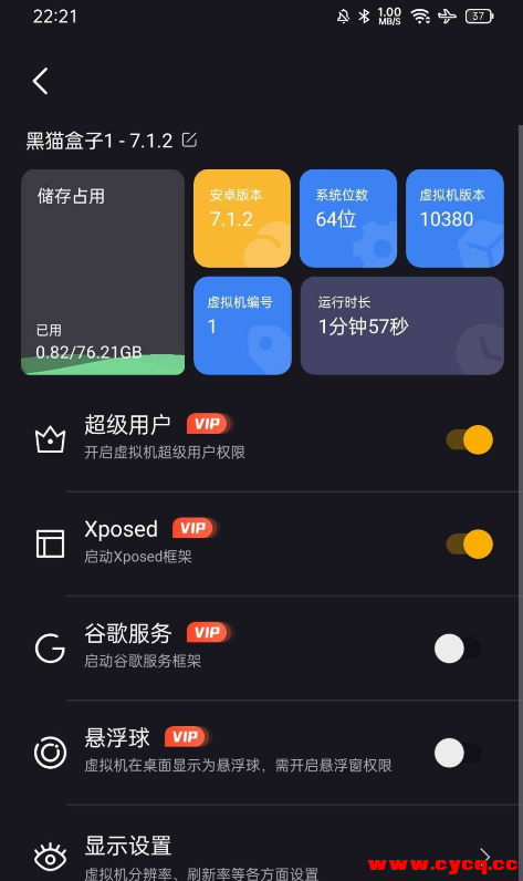 黑猫盒子是一款独立运行的虚拟机应用,支持一键切换系统,所有的操作都在独立封闭的虚拟机环境中,与原系统安全隔离。虚拟机内还自带了xposed框架以及谷歌 ...