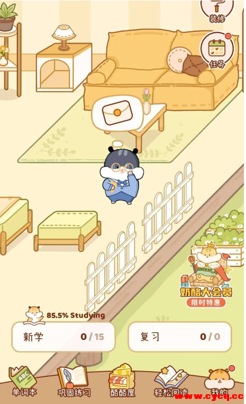● 每日学习可获得奶酪食物、随机道具、抽奖券等,喂养你的宠物