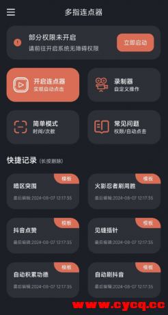 【应用名称】:多指连点器 【应用包名】:com.jiniangu.autoclick 【应用版本】:1.1.5 【应用大小】:25.96M 【适用平台】:Android 5.0 【版本说明】: 解锁永久会员功能 【官方介绍】:一款专为用户提高作效率和体验的应用。它结合了多点触控和自动化作的理念,提供了一系列的工具和功能,帮助用户更好地控制自己的设备。已解锁永久会员。