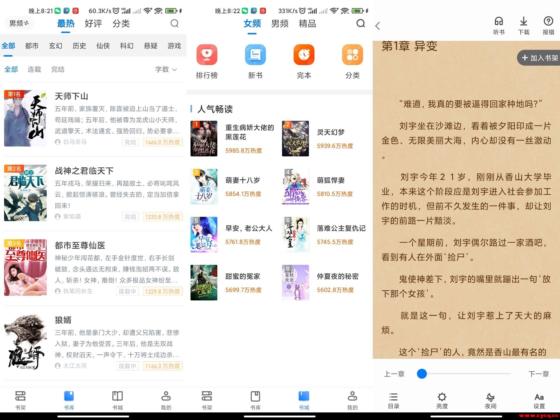 七猫免费小说 v7.3.20 今天推荐的是一款方便易用的小说阅读器,同时支持听书。该软件覆盖了言情小说、穿越小说、现代都市、校园青春、玄幻武侠等各种类型,每天更新小说的资源,作为一个小说爱好者的话不妨可以体验下。主要几个版块有书城、书架、排行榜、图书和分类,右上角放大镜可准确搜索你要的资源。阅读时背景颜色、字体、字号任你挑;自定义排版、书签功能、夜间模式等特色功能俱全!软件支持全本下载,支持AI听书!新版内容:精简首页布局;去除启动广告等其它广告;跳过广告下载小说和听书。修改者加了首次运行弹窗,点进入软件 ...